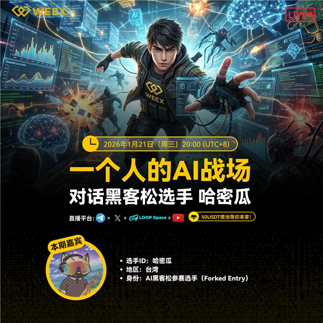 1 月 21 日,WEEX 举办了一场风格截然不同的 Space 活动——《一个人的 AI 战场》,没有复杂的技术拆解,也没有宏大的趋势判断,而是把麦克风交给了一位正在参赛的普通选手:来自台湾的 AI 黑客松参赛者 Hami Melon(哈密瓜)。